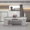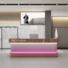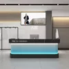 This gradient light luxury reception & checkout counter is the ideal front-desk centerpiece for clothing stores, beauty salons, and boutiques, blending premium aesthetics with practical functionality. Featuring a matte black wear-resistant top paired with a vertically ribbed gradient translucent panel, the bottom ambient light offers adjustable warm and cool tones to instantly elevate your store’s style and attract customers. The rounded curved edges are safe and elegant, with built-in large-capacity storage for documents and devices, plus pre-cut slots for computers and cables to suit checkout and reception needs. Made of eco-friendly, durable panels that are easy to clean, its minimalist modern design complements any commercial space. More than just a work station, it’s the first-impression 名片 that showcases your brand’s taste and retains customers.