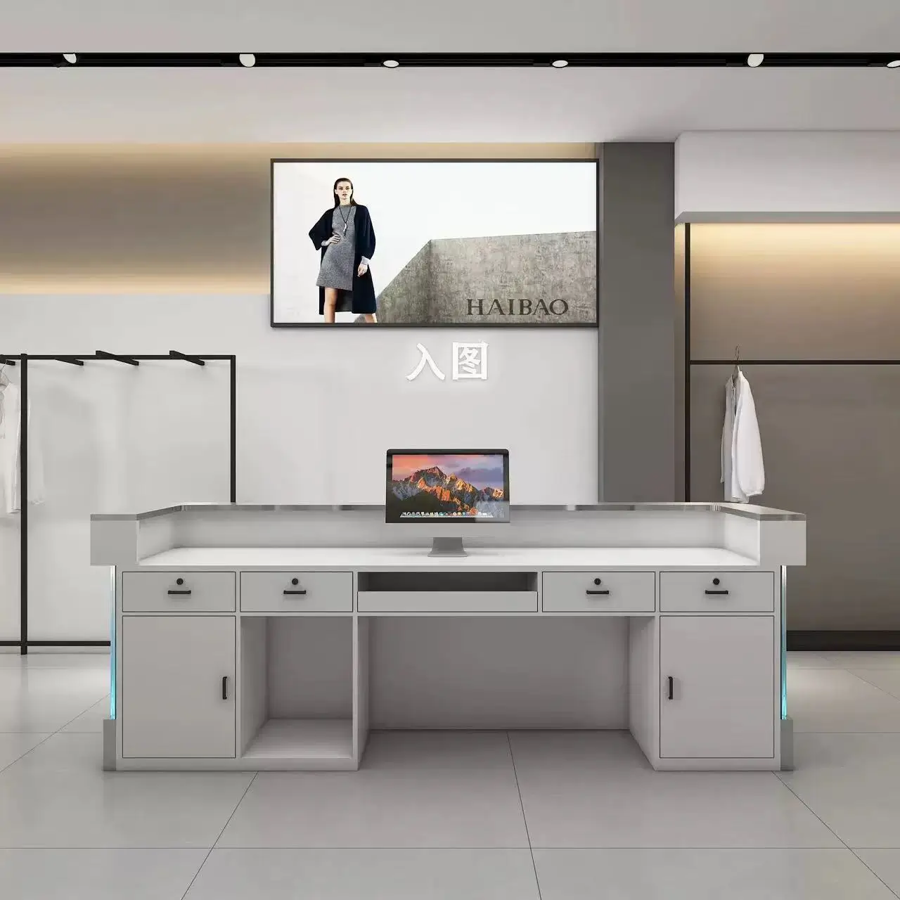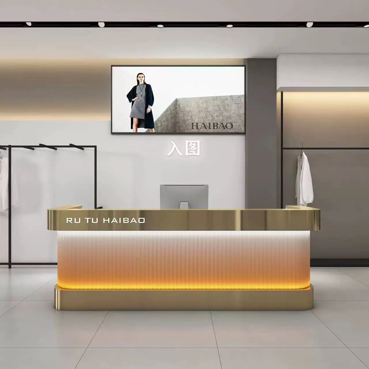 Arc clothing store cash register counter dance studio light luxury stainless steel bar barbershop front desk company reception desk