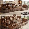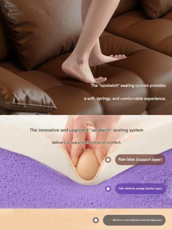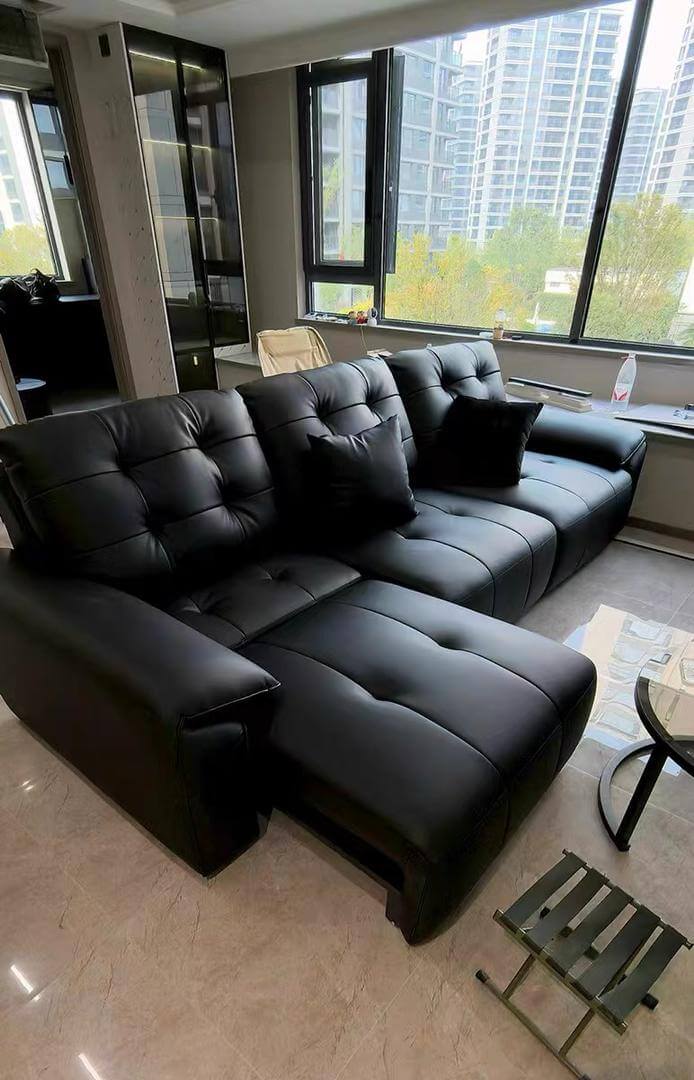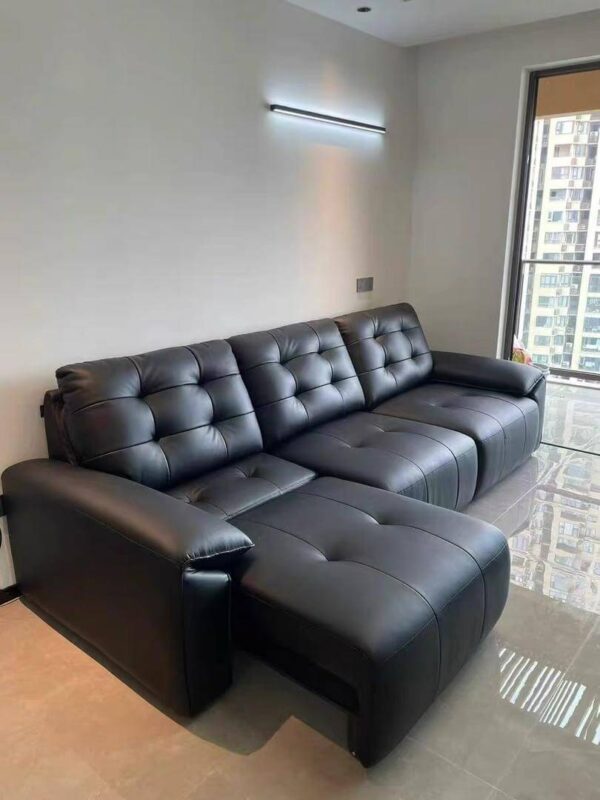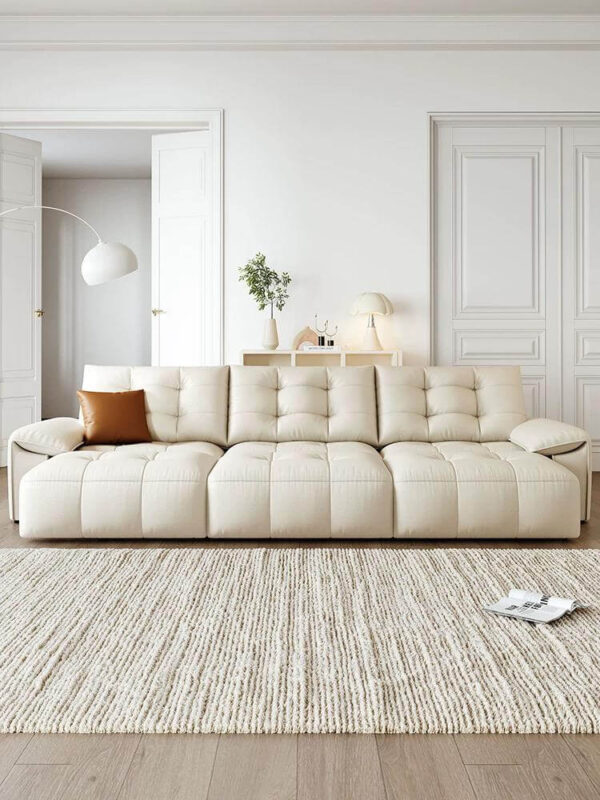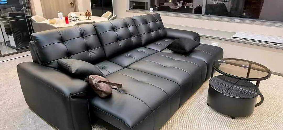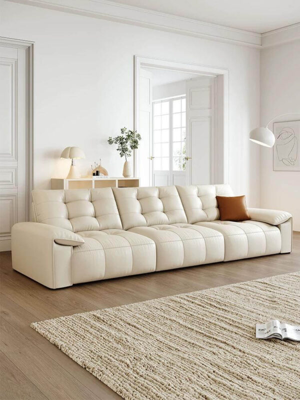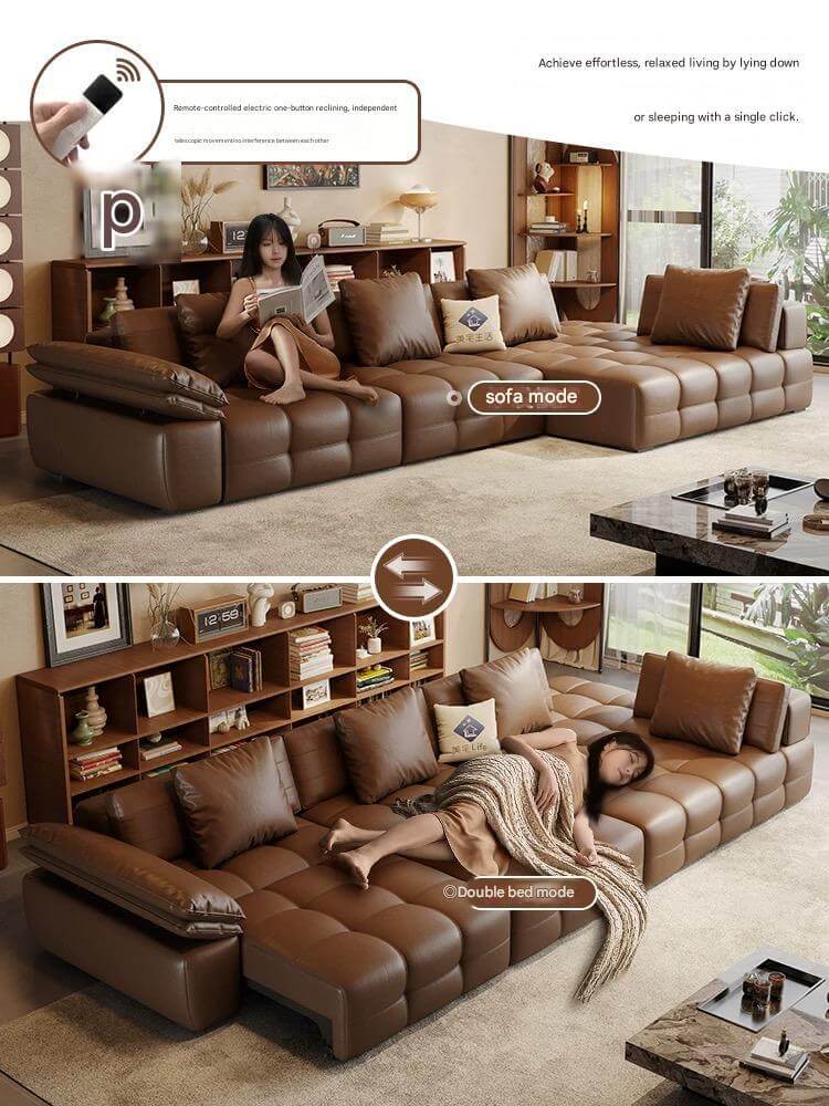 leather sofa bed, living room top-grain cowhide cream style small apartment retractable straight sofa