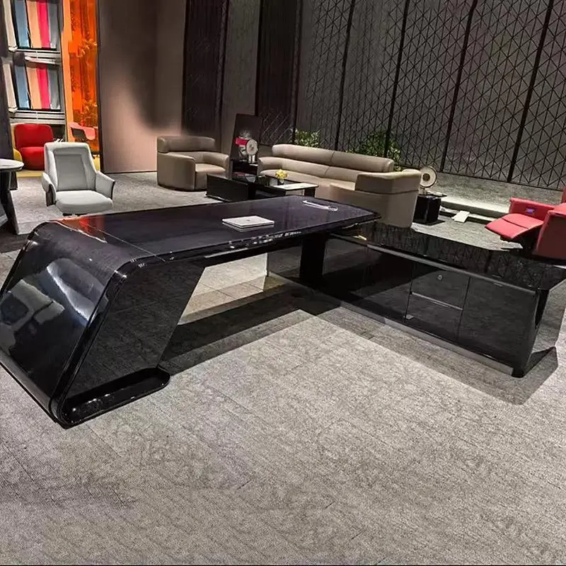 High end MDF executive desk with a light luxury wear-resistant piano lacquer finish, office manager desk and supervisor desk and chair combination