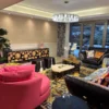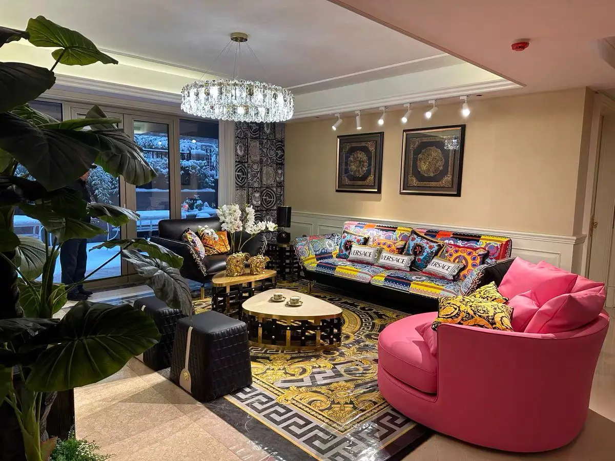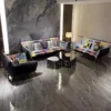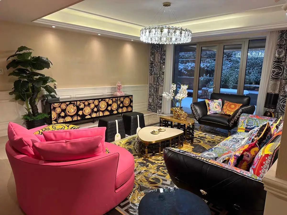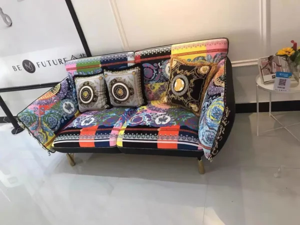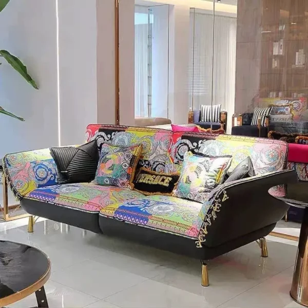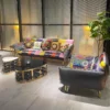 This bold patchwork upholstery seating set exudes eclectic luxury flair—ideal for high-end private clubs, boutique event spaces, or maximalist home living rooms. Its vibrant mixed-pattern fabric (rich textures, eye-catching prints) pairs with sleek black leather accents and metallic legs (adds modern polish). Users love the modular layout (supports flexible seating arrangements) and the ornate throw pillows (amplify the opulent vibe). The glossy marble floor backdrop enhances the set’s drama, and the durable fabrics hold up to frequent use. It’s not just seating; it’s a visual feast that turns any space into a vibrant, sophisticated lounge.
