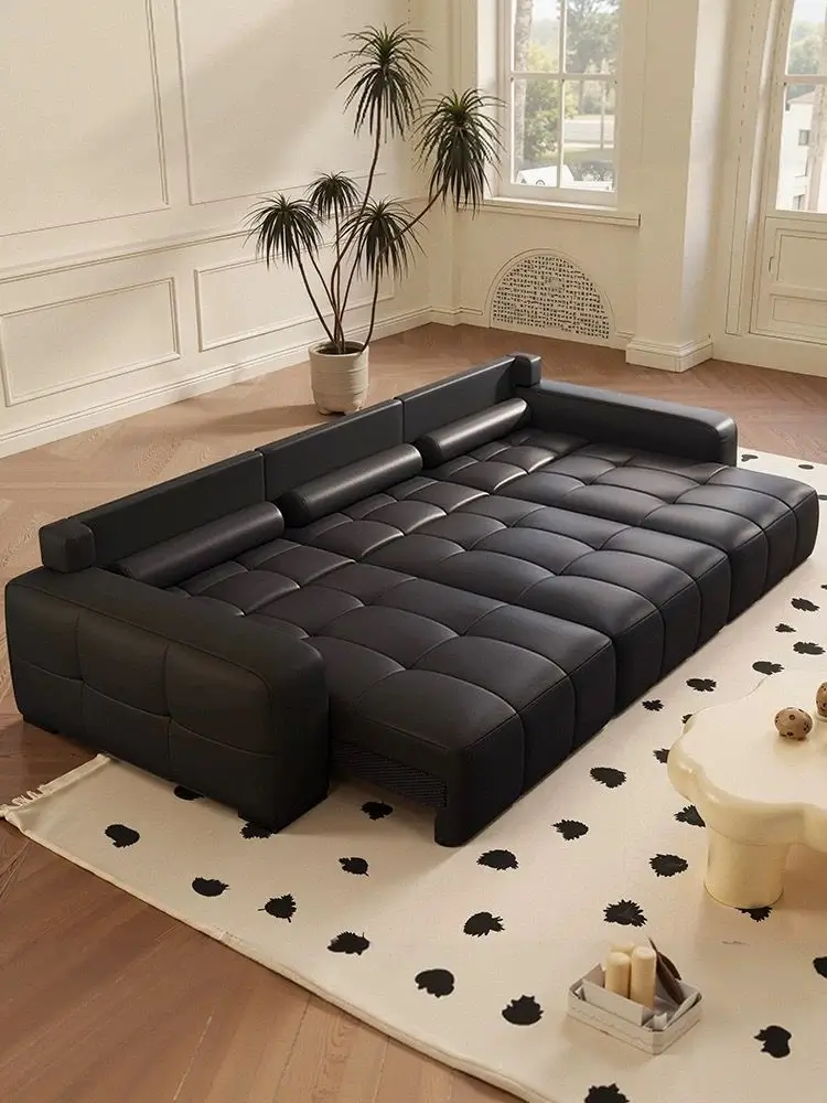 Lawrence electric function leather sofa bed living room 2025 new retractable reclining and sleeping smart straight sofa