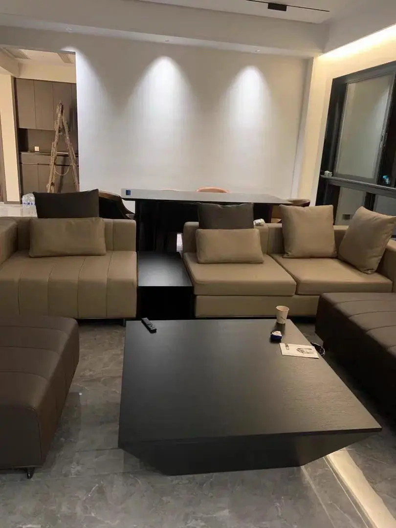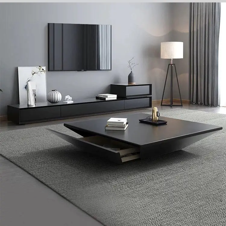 This lift-top coffee table & TV stand set embodies sleek functional minimalism—perfect for modern living rooms or compact urban homes. The matte black coffee table features a smooth lift-top (converts to a dining/working height instantly) plus a hidden storage drawer (tucks away remotes/books). Users love how the matching TV stand adds cohesive style, with spacious cabinets for media devices. The sturdy MDF build feels solid, while the low-profile design keeps the space open. It’s not just furniture; it’s a multi-use centerpiece that turns your living room into a flexible, clutter-free area.