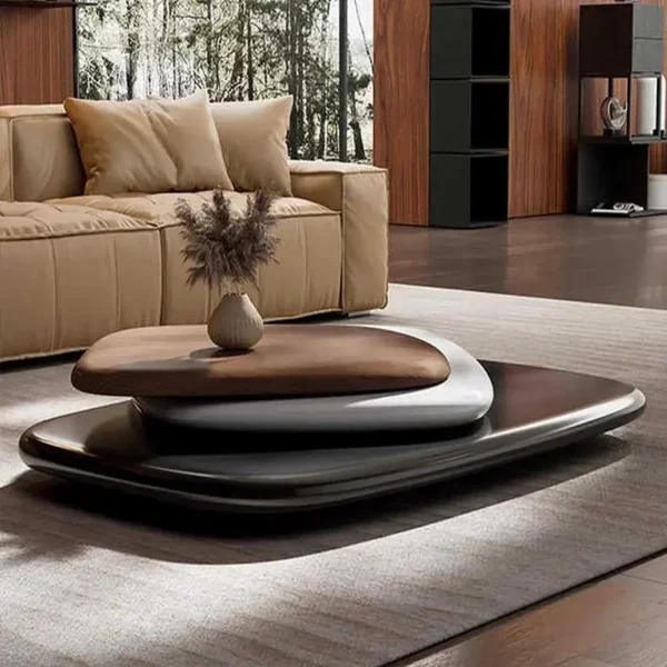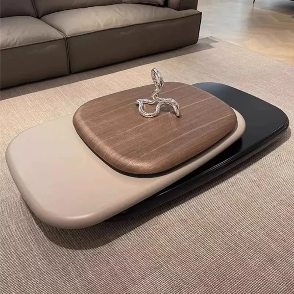 Rotating coffee table for living room, home use, designer style, Italian minimalist, trendy, uniquely shaped, creative, modern minimalist coffee table