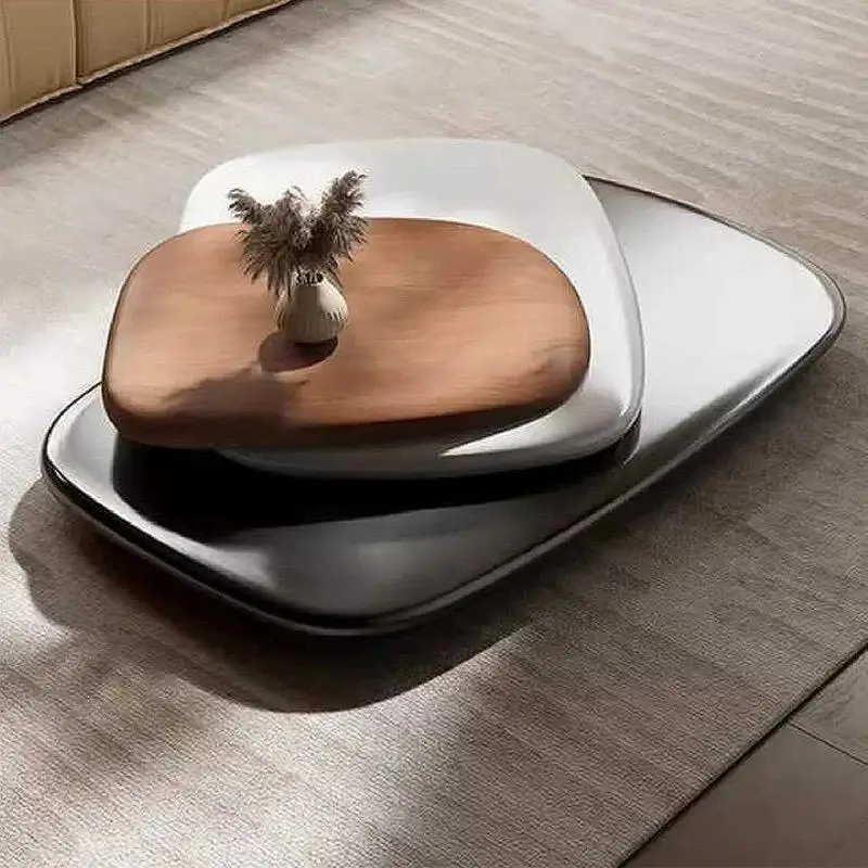 This nested coffee table set embodies sleek modern minimalism—ideal for contemporary living rooms or small spaces. Its layered, irregular shapes add playful visual interest, while the matte black/gray finishes pair with the warm wood inset for a balanced, refined look. Users love the nested design: it saves space when not in use, and the large top surface fits drinks/snacks easily. The smooth, rounded edges feel safe (great for families) and the lightweight build makes rearranging effortless. It’s not just furniture; it’s a stylish, functional centerpiece that elevates small living areas.