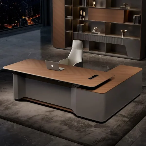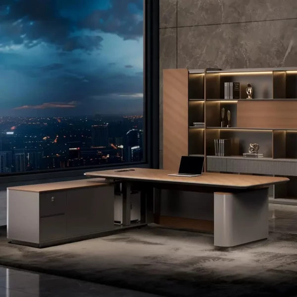 This height-adjustable executive desk merges modern luxury with ergonomic practicality—perfect for high-end, health-focused offices. The smooth wood-veneer tabletop pairs with a sturdy matte metal lift frame, supporting seamless sit-stand transitions (65-125cm height range). Users rave about the integrated storage bench: it doubles as extra meeting seating and tucks away small items, while the spacious surface fits dual monitors easily. The quiet electric lift system operates without disrupting focus, and the neutral palette complements upscale decor. It’s not just a desk; it’s a versatile workspace that balances authority, comfort, and wellness—making long workdays both productive and gentle on the body.