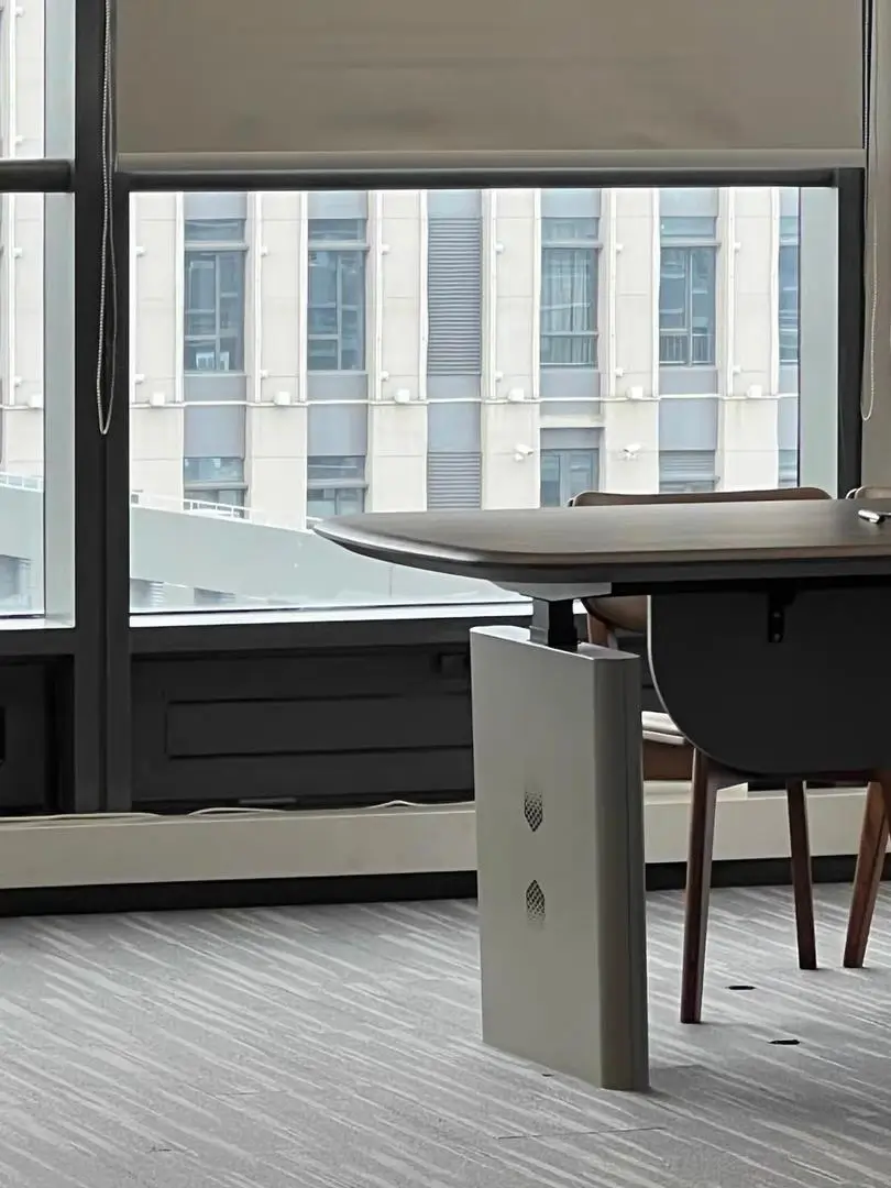 This height-adjustable executive desk set blends sleek modern professionalism with ergonomic comfort—ideal for high-end home offices or corporate executive spaces. Its wood-grain tabletop (warm yet refined) pairs with a quiet electric lift frame (supports 65-125cm sit-stand transitions). Users rave about the integrated storage bench (tucks clutter + doubles as meeting seating) and the spacious surface (fits dual monitors + laptop effortlessly). The matte neutral base syncs with backlit shelving, while sturdy metal components ensure stability even during frequent height changes. It’s not just a desk; it’s a productivity-focused workspace that cares for your posture.