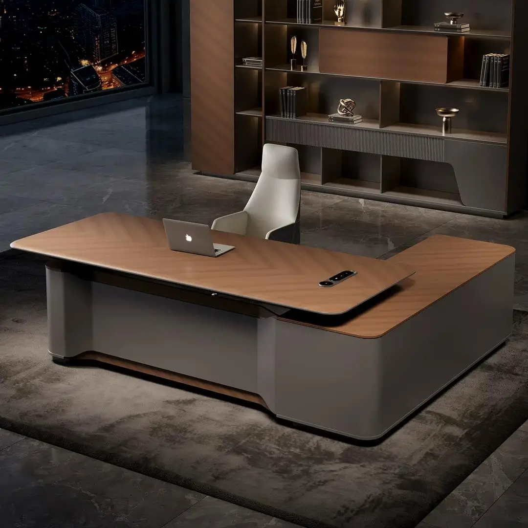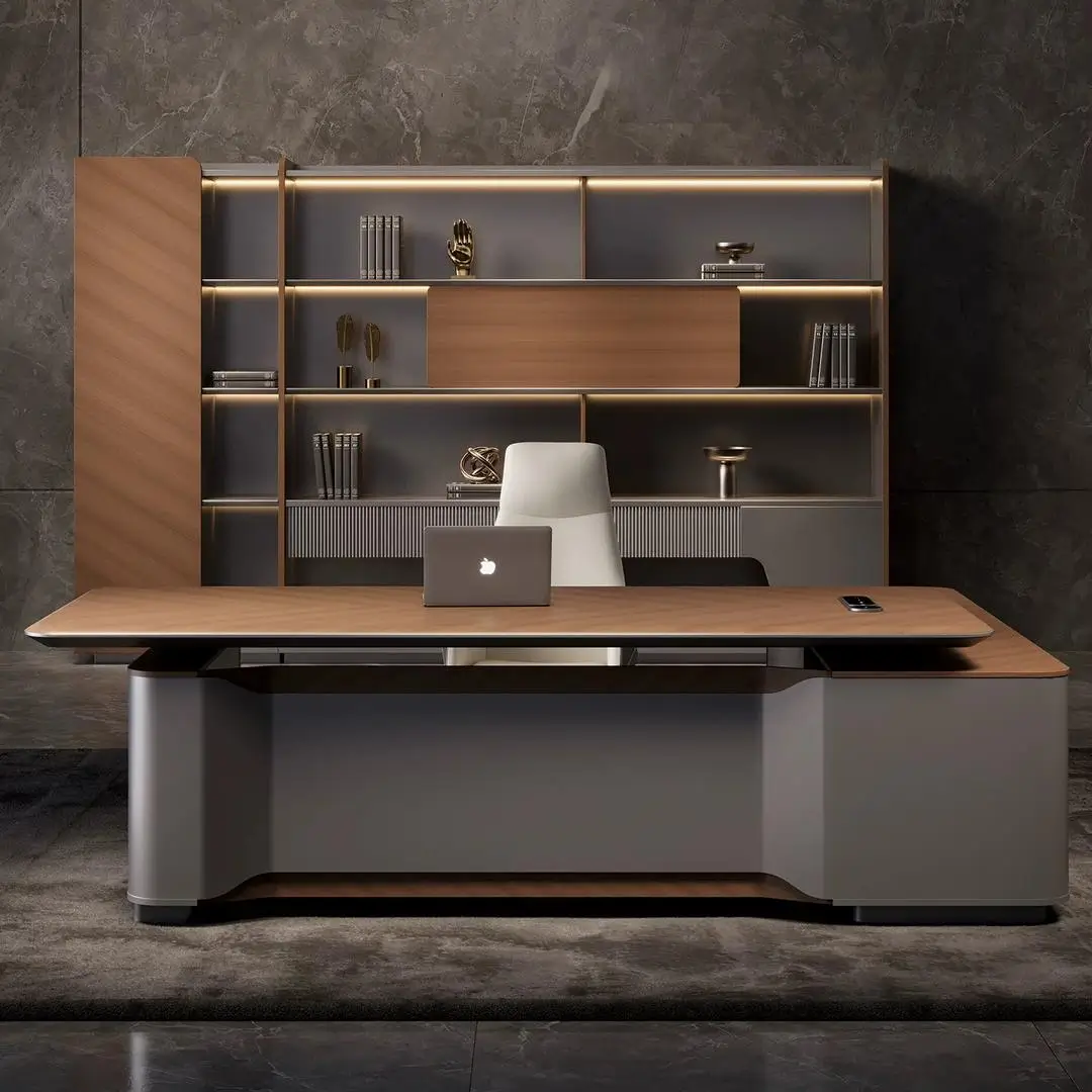 This height-adjustable executive desk merges modern luxury with ergonomic practicality—perfect for high-end, health-focused offices. The smooth wood-veneer tabletop pairs with a sturdy matte metal lift frame, supporting seamless sit-stand transitions (65-125cm height range). Users rave about the integrated storage bench: it doubles as extra meeting seating and tucks away small items, while the spacious surface fits dual monitors easily. The quiet electric lift system operates without disrupting focus, and the neutral palette complements upscale decor. It’s not just a desk; it’s a versatile workspace that balances authority, comfort, and wellness—making long workdays both productive and gentle on the body.